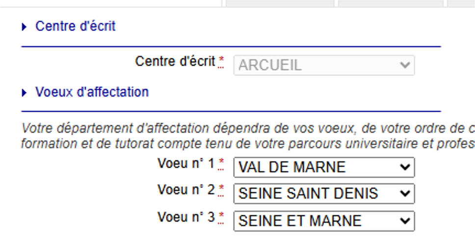 Vous devez ensuite faire des vœux en classant les départements. Ces vœux seront pris en compte pour votre affectation en tant que professeur des écoles stagiaire une fois que vous aurez le concours. Certaines académies ne demandent pas de classement tout de suite.