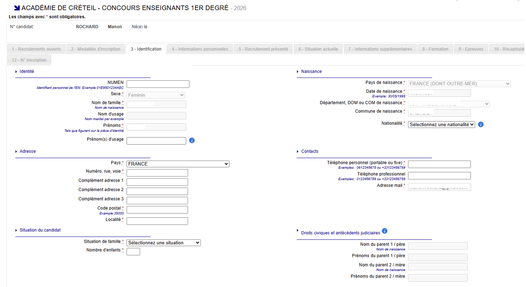 Remplissez sur la page suivante toutes vos informations personnelles obligatoires, avant ce cliquer sur « Suivant ». Le numéro de NUMEN n'est pas obligatoire ;).: