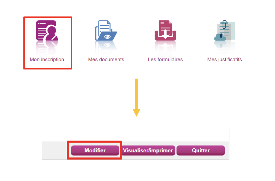 Si vous souhaitez modifier une inscription, c'est possible jusqu'à la date de clôture des inscriptions. Si vous suffit de cliquez sur l'inscription que vous souhaitez modifier, puis cliquez sur "mon inscription" et sur "modifier".