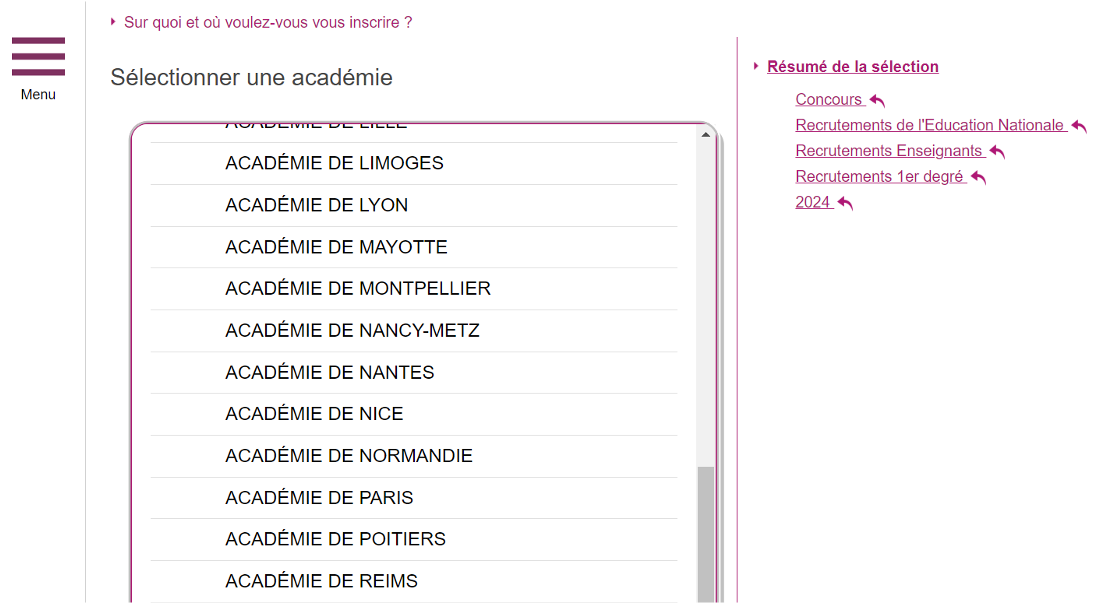 Viendra ensuite le premier choix : celui de votre académie. A savoir que l'inscription possible à autant d’académies que vous souhaitez.