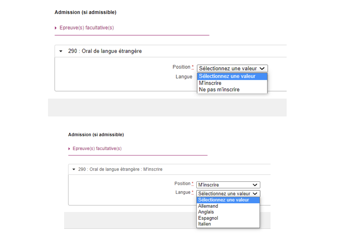 Enfin, pour le concours M2 (et non pour le concours L3), vous devez indiquer si vous souhaitez ou non vous inscrire à l’option LVE