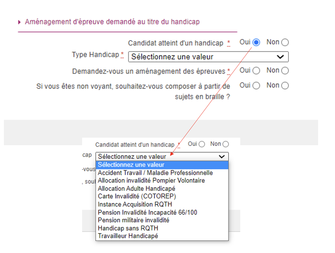 Si vous êtes en situation de handicap, c’est sur la page suivante que vous devrez signaler un aménagement éventuel des épreuves. Si vous avez des questions à ce sujet, n’hésitez pas à contacter la DSDEN de votre académie.